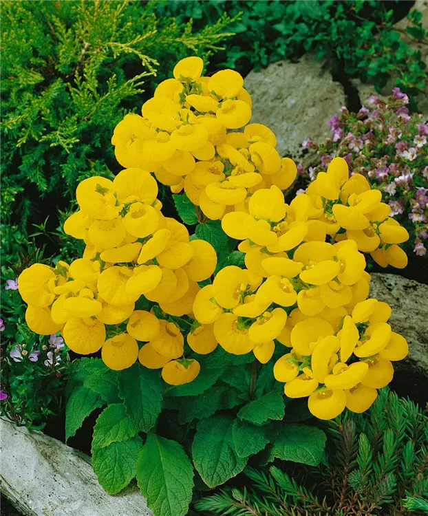 Die Garten-Pantoffelblume (Calceolaria integrifolia) ist eine beliebte Pflanze für den Balkon. Die unzähligen Blüten erscheinen, je nach Sorte, in verschiedenen Farben die ganze Saison hindurch. Ein sonniger bis halbschattiger Standort und ein durchlässiges Substrat werden bevorzugt.