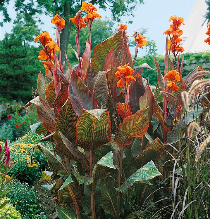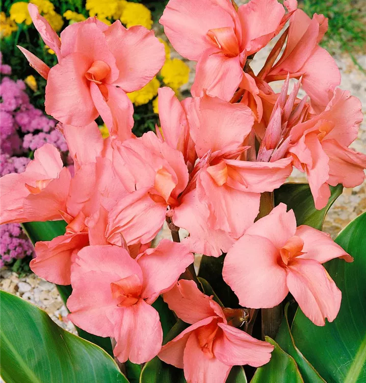 Die Canna (Canna) ist eine beliebte Pflanze für den Balkon. Die unzähligen Blüten erscheinen, je nach Sorte, in verschiedenen Farben die ganze Saison hindurch. Ein sonniger Standort und ein durchlässiges Substrat werden bevorzugt.