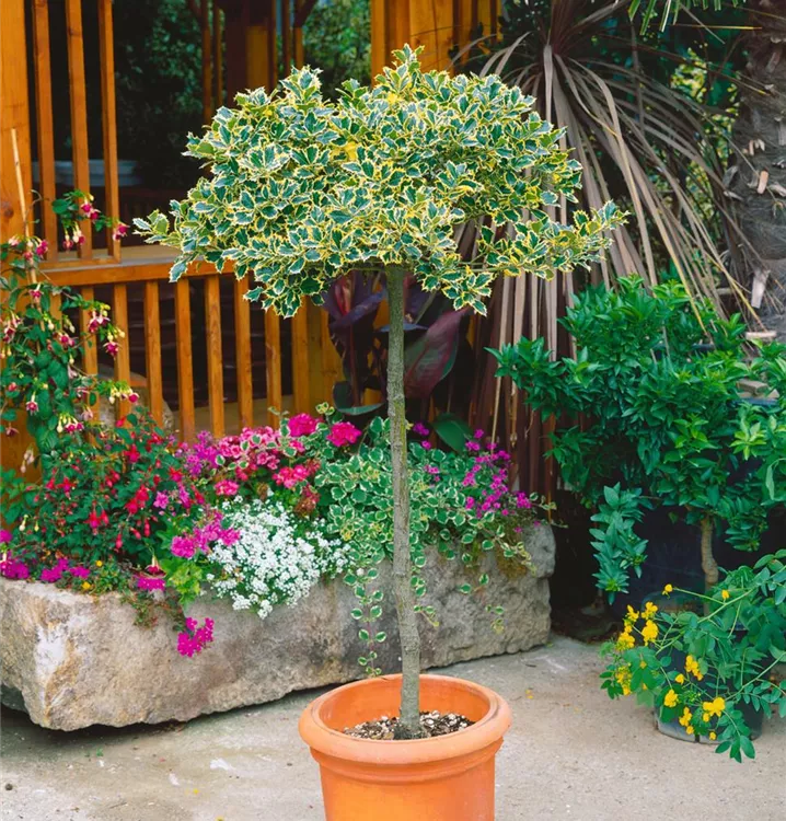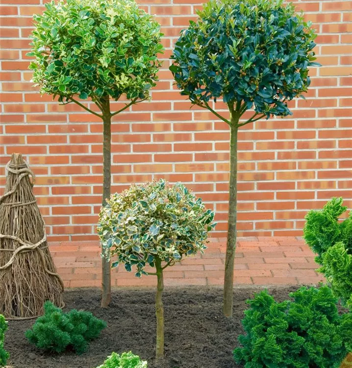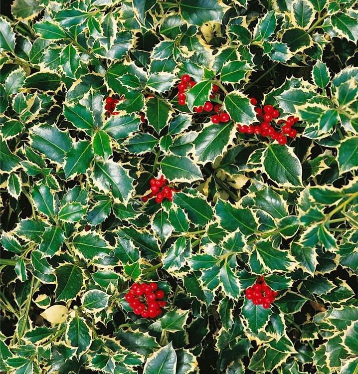 Die Gemeine Stechpalme (Ilex aquifolium) ist ein ausladender, pyramidaler Großstrauch mit dekorativen, roten Früchten, die sehr lange haften. Die Blüten erscheinen je nach Sorte in verschiedenen Farben.