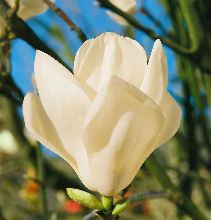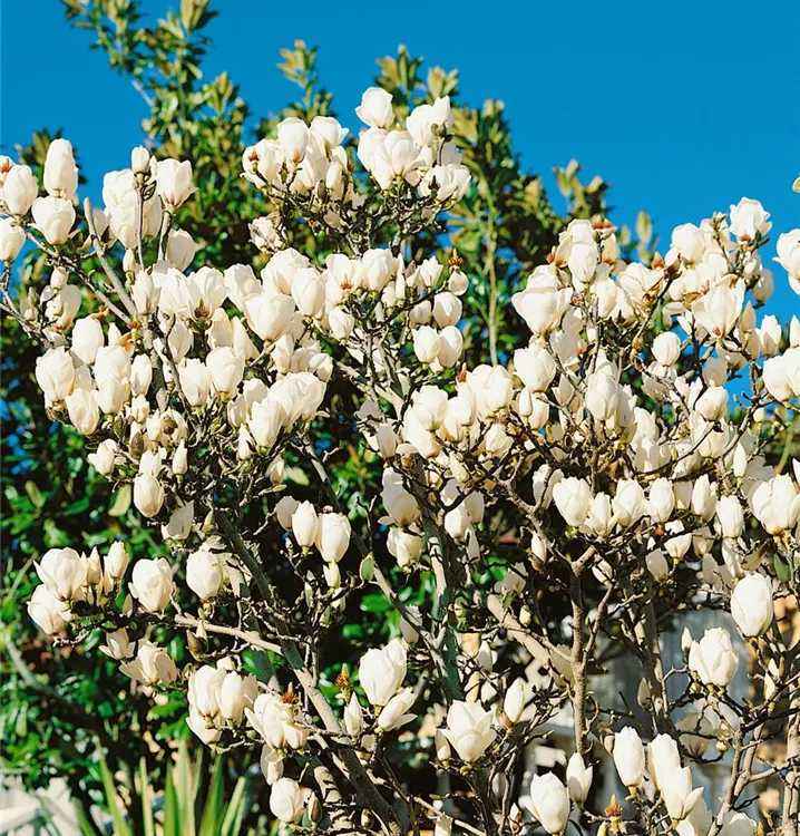 Sommergrüne Yulan-Magnolie ist ein ausladend wachsender, malerischer Großstrauch. Sie erreicht gewöhnlich eine Höhe von 5 - 9 m und wird ca. 4 - 6 m breit.
