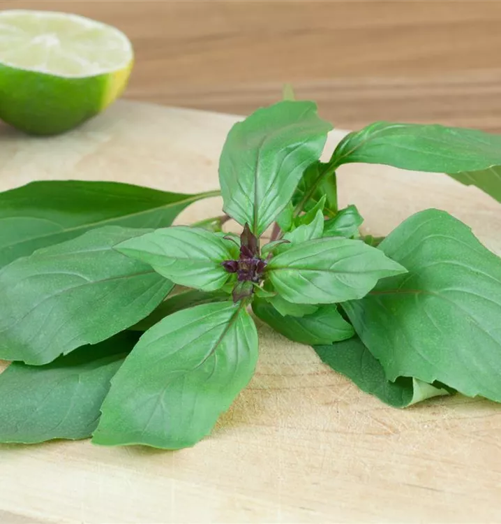 Das Zimt-Basilikum 'Cinamonette' (Ocimum basilicum) ist eine Kräuterpflanze mit einem würzigen Geschmack. Für das optimale Wachstum des Zimt-Basilikums 'Cinamonette' werden ein sonniger Standort und durchlässiger, nährstoffreicher Boden benötigt.