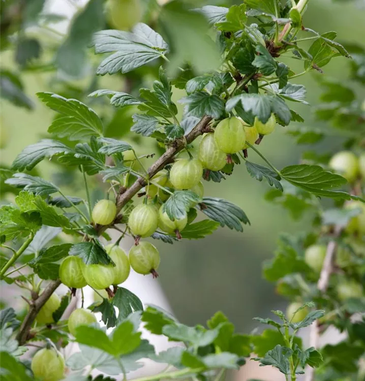 Die Stachelbeere (Ribes uva-crispa) bildet grüngelbe Beeren. Diese sind süß im Geschmack. Für eine ertragreiche Ernte ab Juli schaffen durchlässiger, lockerer, nährstoffreicher Boden und ein sonniger bis halbschattiger Standort optimale Bedingungen. Auch ihre weißen Blüten sind eine schöne Erscheinung.
