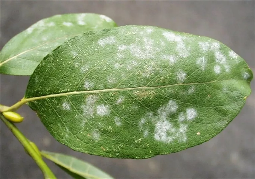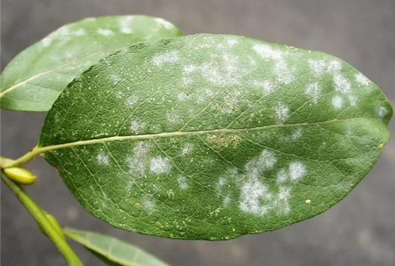 An Weide können verschiedene Mehltauarten vorkommen. Im Spätsommer und Herbst kann man beim Weidenmehltau auch die winzigen kugeligen schwarzen Fruchtkörper des Pilzes erkennen.