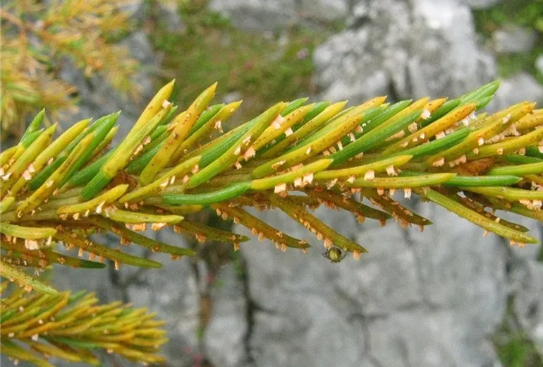 Pilzliche Nadelerkrankungen kommen selten vor. Eine Bekämpfung ist kaum möglich.