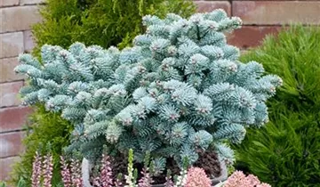 Die Zwergedeltanne 'Procumbens' ist immergrün. Ihre Nadeln sind silberblau.