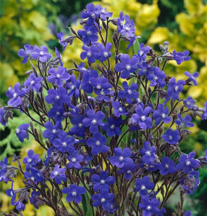 Anchusa azurea bildet trichterförmige, in Rispen angeordnete, blaue Blüten ab Juni.