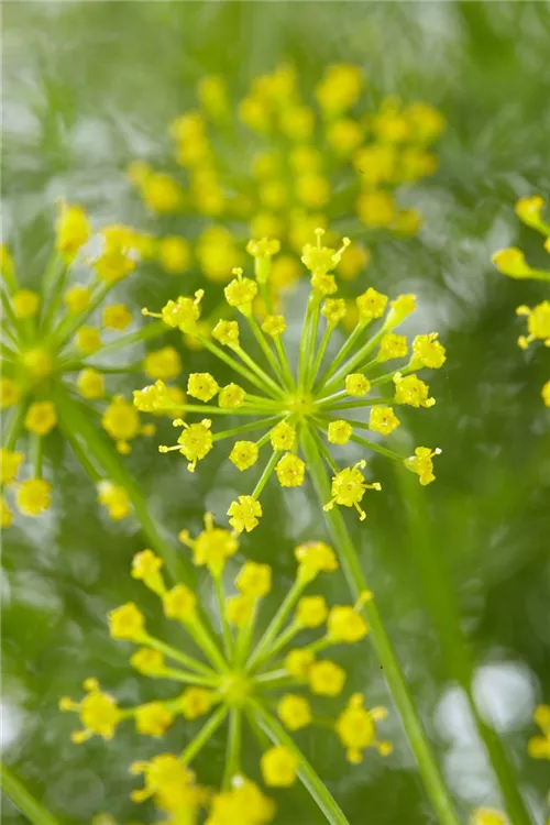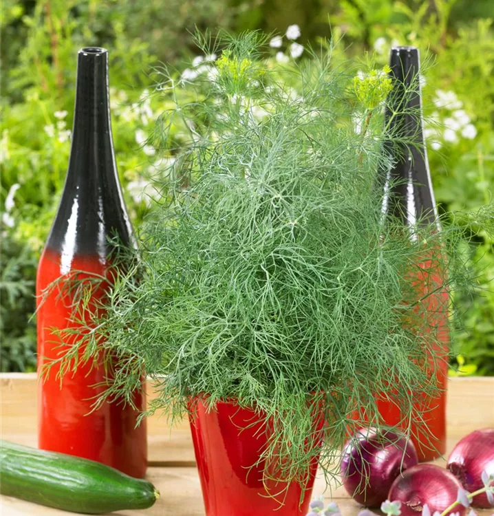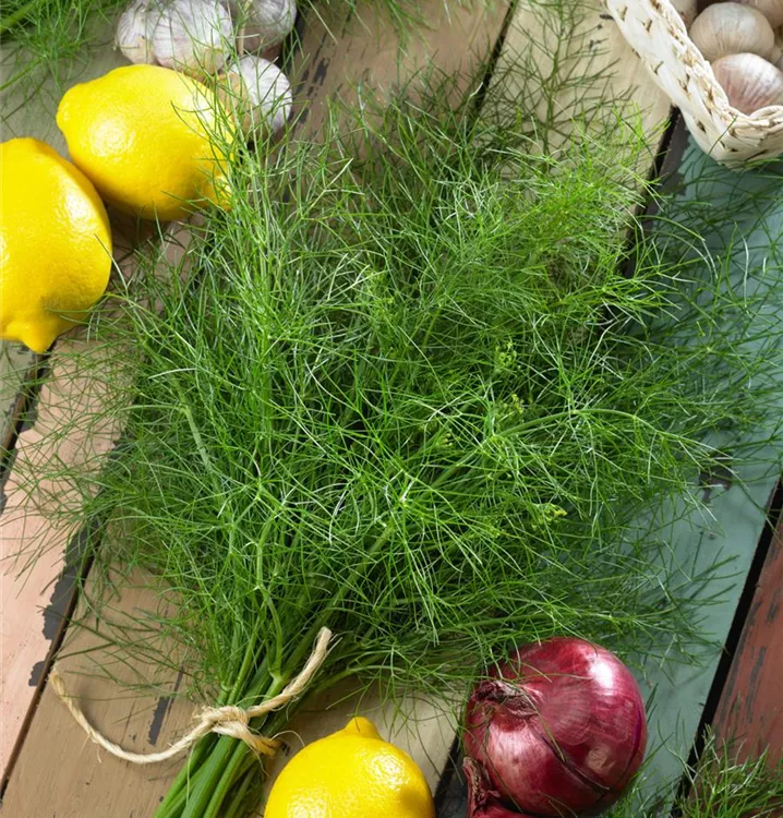 Der Garten-Dill (Anethum graveolens var. hortorum) ist eine Kräuterpflanze mit einem würzigen Geschmack. Seine dunkelgrünen Blätter sind tief geschlitzt. Für das optimale Wachstum des Garten-Dills werden ein sonniger Standort und durchlässiger, nährstoffreicher Boden benötigt.