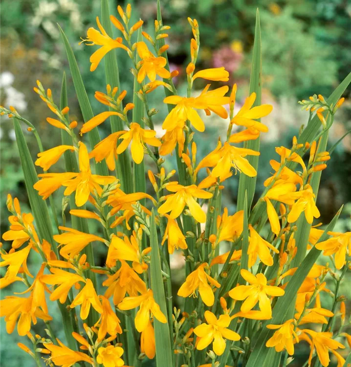 Je nach Sorte, bildet Crocosmia x crocosmiiflora Blüten in verschiedenen Farben.