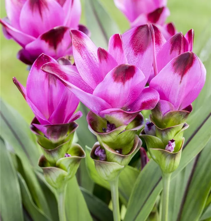 Der Safranwurz (Curcuma alismatifolia) bringt ansehnliche, rosafarbene Blüten von April bis August hervor. Er bevorzugt durchlässigen, humosen, lockeren, nährstoffreichen Boden in sonniger bis halbschattiger windgeschützter Lage. Die rhizombildende Staude erreicht gewöhnlich eine Höhe von 60 - 80 cm und wird bis zu 60 cm breit.