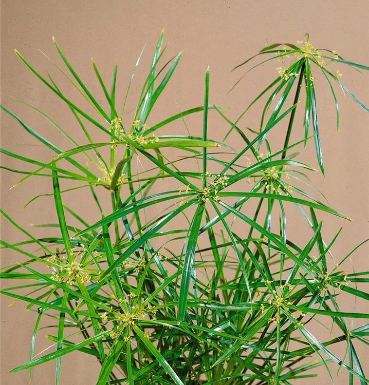 Das Zypergras (Cyperus alternifolius) bildet Blüten, je nach Sorte, in vielen Farben von Juli bis September.Es bevorzugt durchlässigen, nährstoffreichen, lehmigen Boden in sonniger bis halbschattiger Lage. Die horstbildende Staude erreicht gewöhnlich eine Höhe von ca. 1 m.