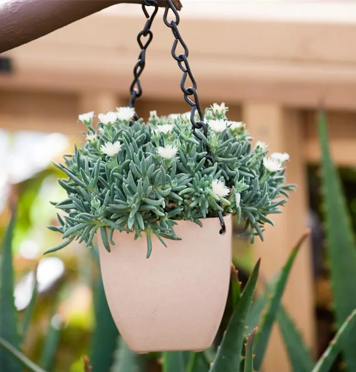 Die immergrünen Blätter der Zwergige-Mittagsblume sind grau-grün, dickfleischig.