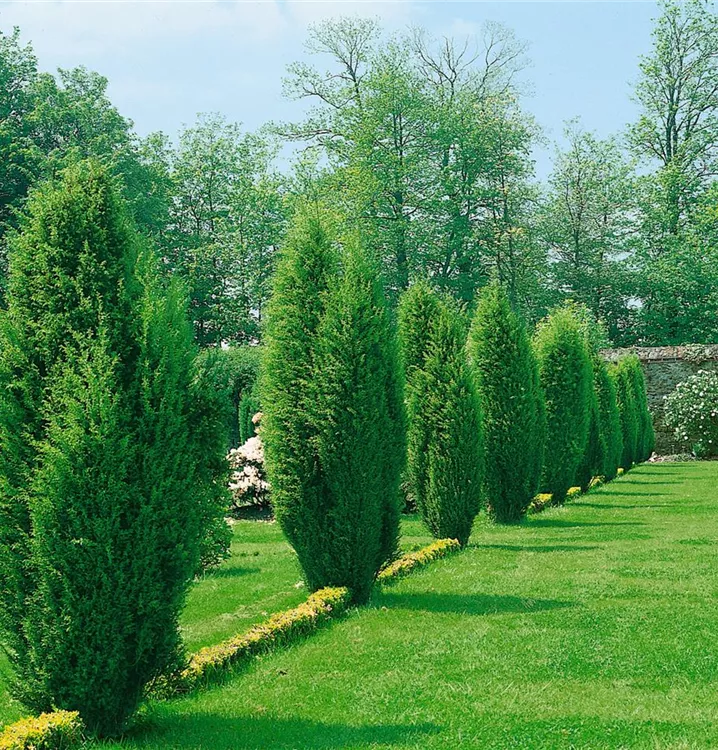 Der Gemeine Wacholder (Juniperus communis) ist ein Großstrauch, welcher säulenförmig wächst und gewöhnlich eine Höhe von ca. 8 m und eine Breite von ca. 3 m erreicht. Seine nadelförmigen Blätter haben eine blau-grüne Färbung. Dekorative schwarz-braune Zapfen zieren Juniperus communis ab September. Dieses Gehölz ist gut frostverträglich. Er bevorzugt durchlässigen Boden in sonniger Lage.