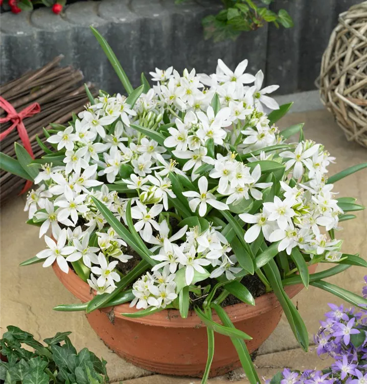 Der Milchstern (Ornithogalum balansae) bringt ansehnliche, weiße Blüten von März bis April hervor. Bevorzugt wird ein durchlässiger, nährstoffreicher Boden in sonniger bis halbschattiger Lage. Die aufrechte Staude erreicht gewöhnlich eine Höhe von 10 - 15 cm und wird bis zu 20 cm breit.