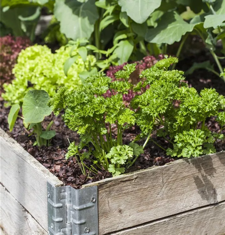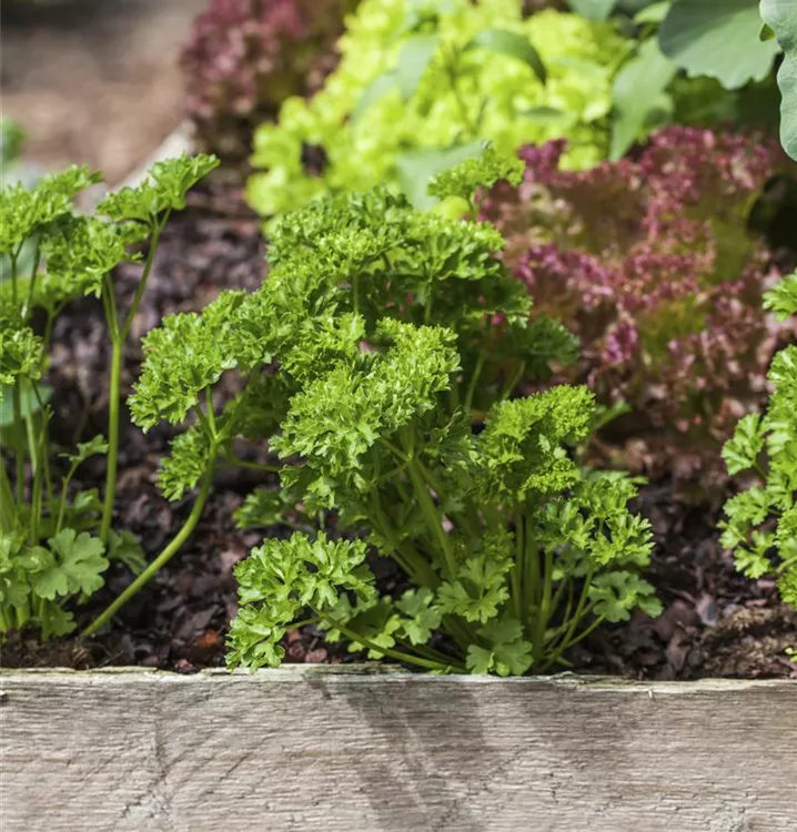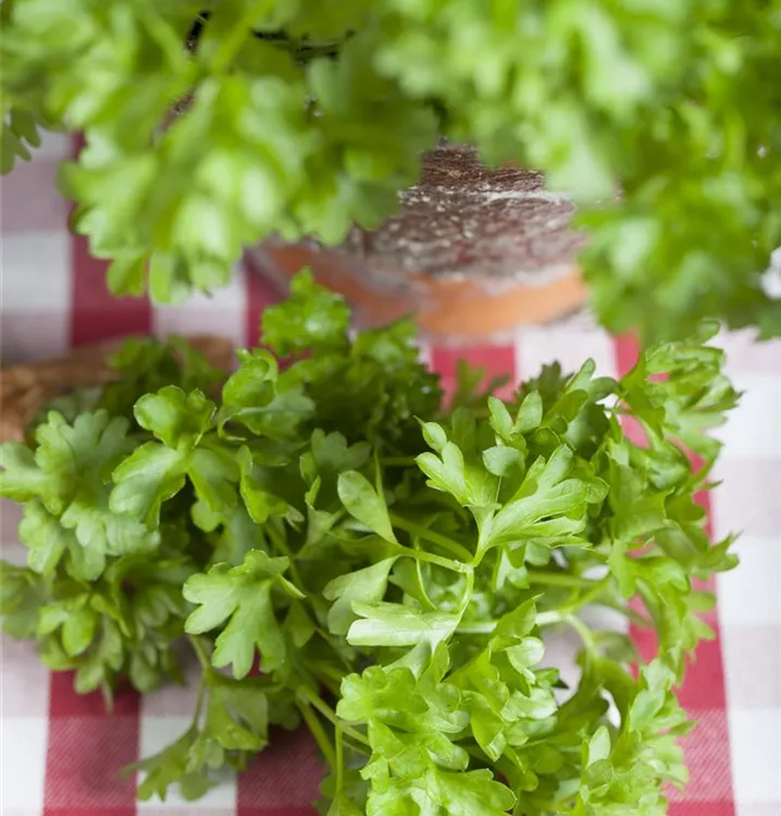 Die Krause Petersilie (Petroselinum crispum) ist eine Kräuterpflanze mit einem aromatischen Geschmack. Ihre dunkelgrünen Blätter sind gefiedert und gewellt. Für das optimale Wachstum der Krause Petersilie werden ein sonniger Standort und durchlässiger, nährstoffreicher Boden benötigt.